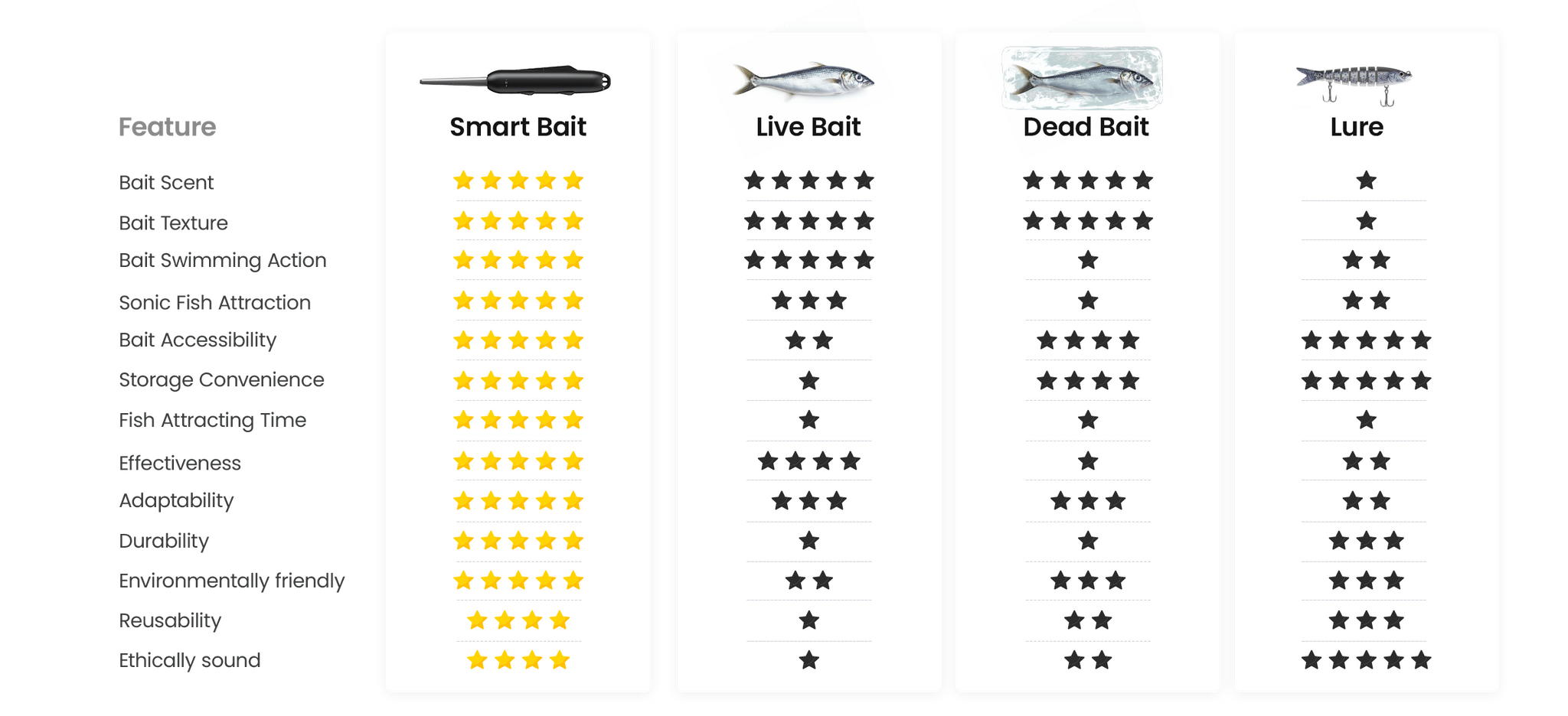- Versatile use - Whether you fish in lakes, rivers, coastal waters, or deep sea, Smart Bait improves strike rates compared to traditional dead bait.