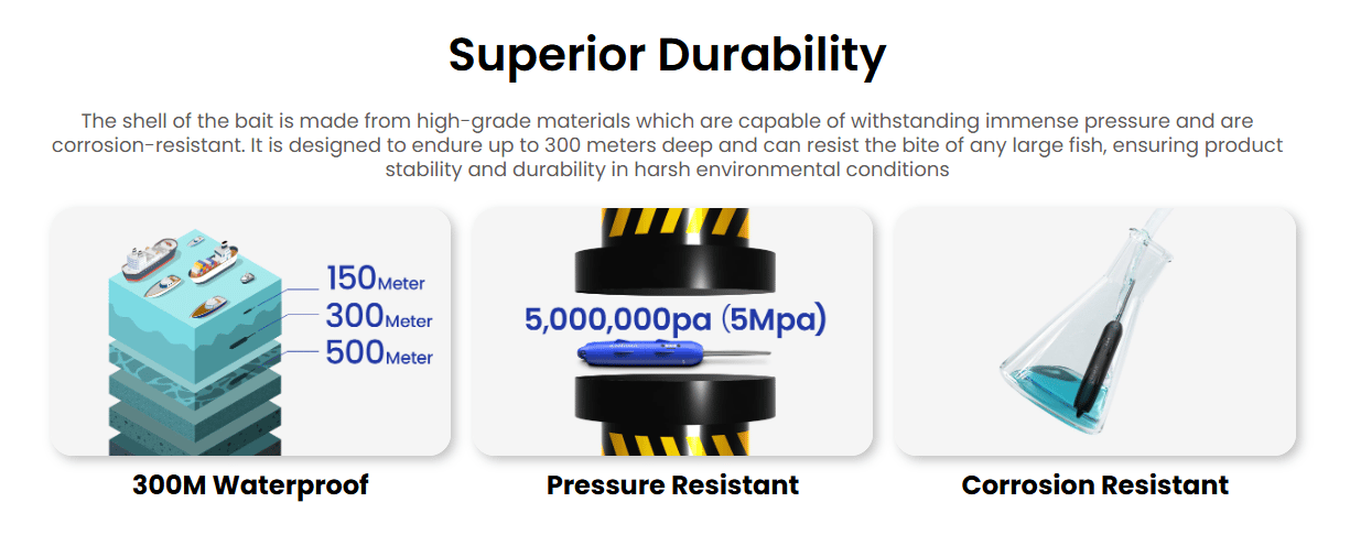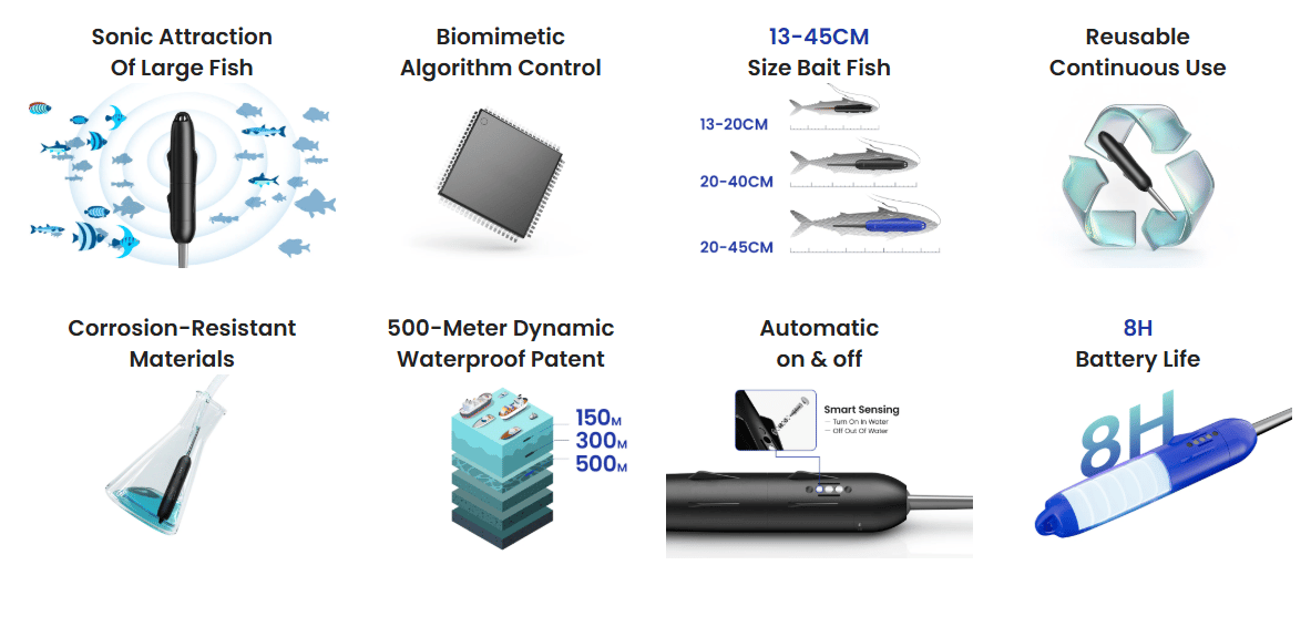 Equipped with a high-sensitivity liquid level sensor, the bait automatically turns on when immersed in water and turns off when removed. ⚙️👍This smart feature simplifies the usage of the bait, making it convenient for anglers to operate without manual intervention, enhancing the overall fishing experience.